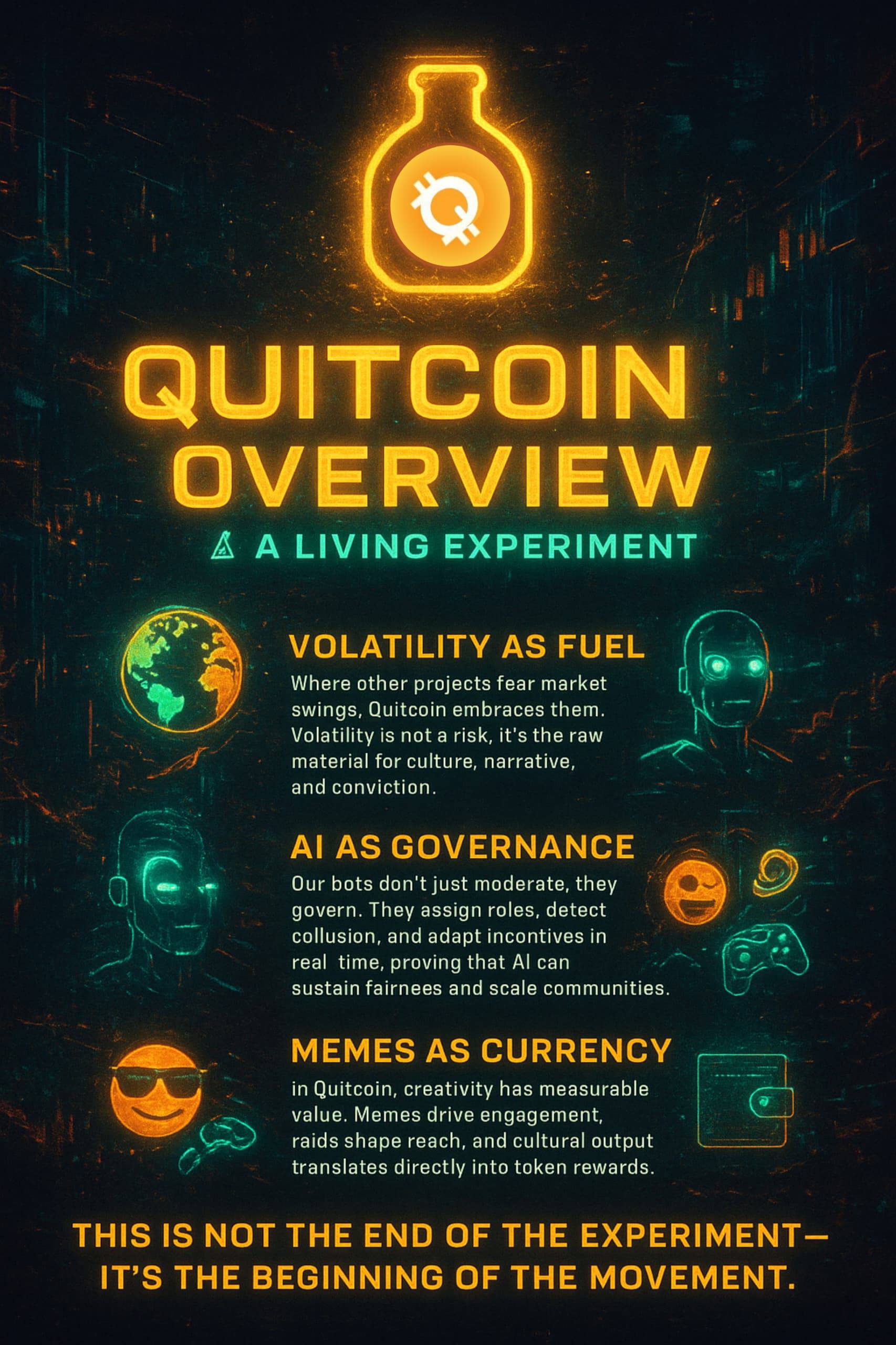 Quitcoin thrives in volatility, rewards courage, and scales through culture. It is both an **experiment** and a **movement**, where memes become influence, technology builds trust, and community drives value.